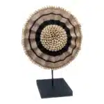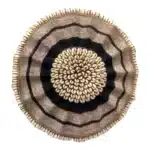 The beaded Cameroon shields bring Afrochic elegance into any space, admired by decorators and collectors of African décor. Each shield is handcrafted by artisans, inspired by the protective emblems once carried by Tikar Tribe hunters and warriors. Symbolising wealth and status, they feature intricate adornments of beads, cowrie shells, and Manila string. These one-of-a-kind pieces make striking wall or floor displays.