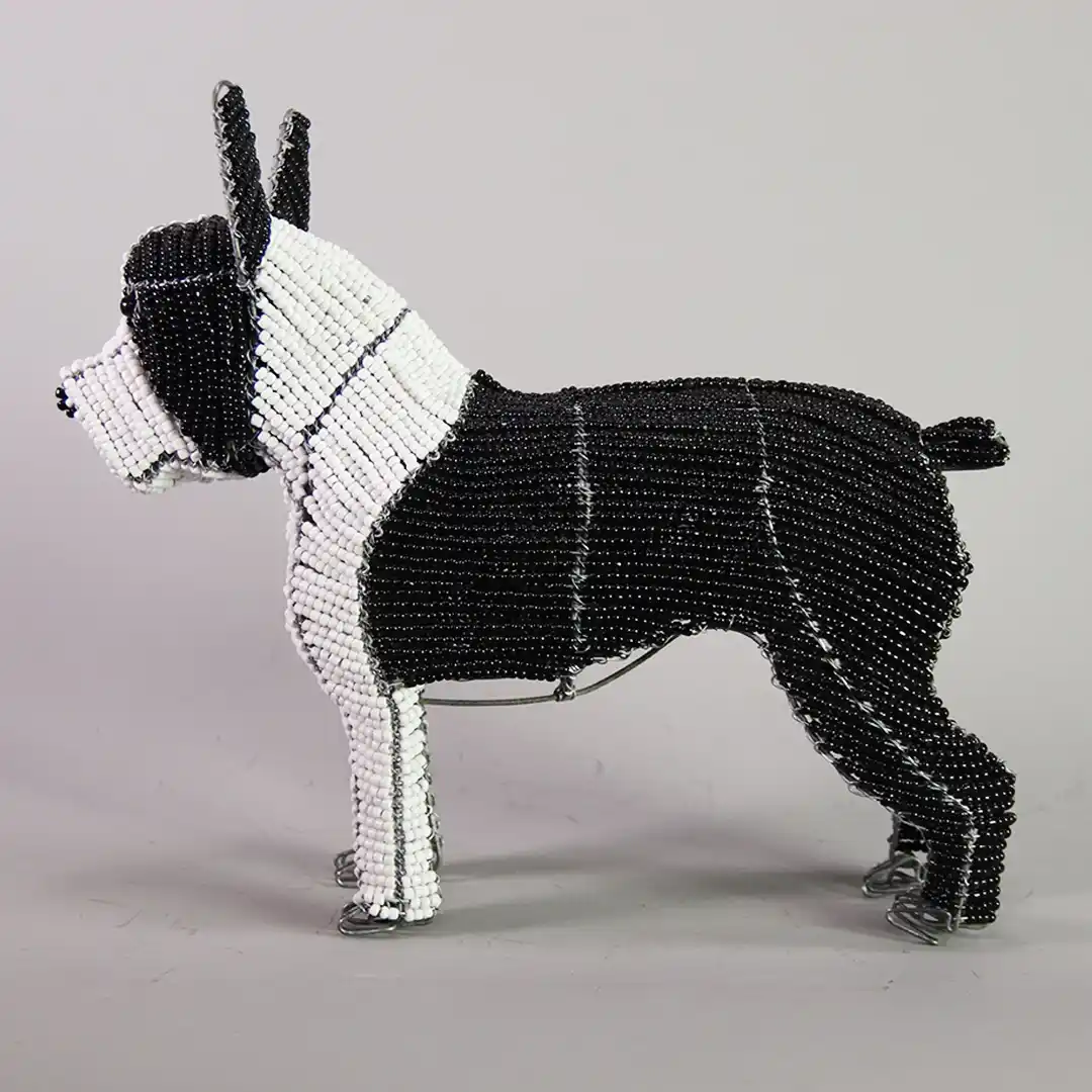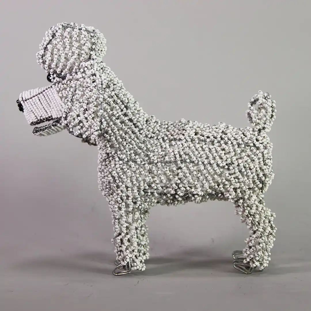 The Beaded Dog is a handcrafted wire-and-bead sculpture made in South Africa, showcasing vibrant colours and intricate detailing. Created by skilled artisans, each piece is unique, celebrating African creativity and craftsmanship. A charming décor accent, it adds playful character while supporting traditional beadwork and providing sustainable livelihoods in rural communities.