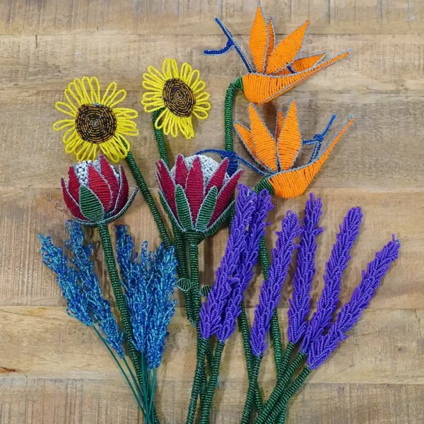 The Beaded Protea is a stunning handcrafted piece, made in South Africa to celebrate the country’s iconic national flower. Each bloom is carefully shaped from durable wire and adorned with intricately threaded glass beads, creating a lifelike, everlasting design. Perfect for adding African elegance to any home or office, it requires no care and will never wilt. Each Protea is unique, with slight handmade variations.