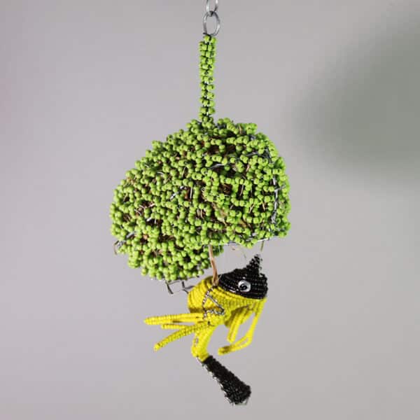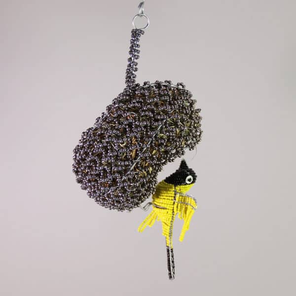 The Beaded Bird’s Nest is a handcrafted wire and bead sculpture, designed with intricate detailing that celebrates African artistry. A natural grass nest can be placed over the structure for added authenticity and charm. Each piece is unique due to its handmade nature.
