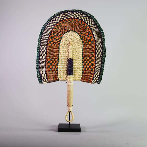 Handwoven in Ghana from natural elephant grass, these vibrant Bolga fans showcase authentic African craftsmanship. Dyed in bold, eye-catching colors, the intricate weaving ensures a sturdy yet flexible design. Perfect for wall displays, they can be styled as a set of three or paired with other baskets for a striking decorative accent.
