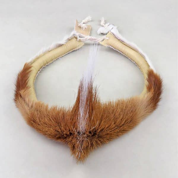 This traditional Zulu headband from South Africa is handmade from Springbok hide and tied with adjustable string at the back. Worn by Zulu men at cultural events, it also serves as a proud symbol of national identity. Crafted by rural Zulu beadworkers, each purchase supports women in rural villages, empowering them to provide for their families while preserving cultural heritage.